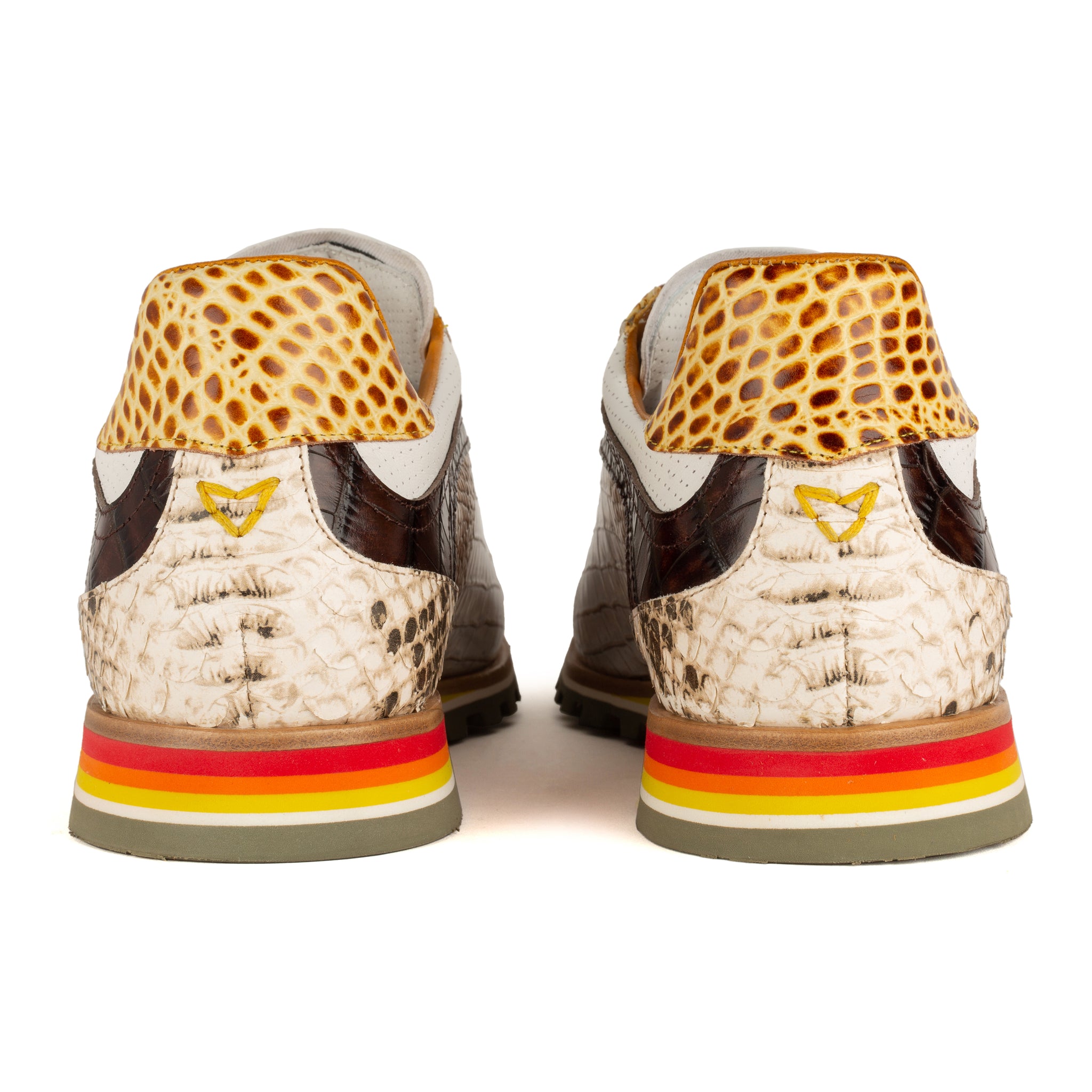 Colore scarpa: VITELLO STAMPATO PITONE COL LATTE CON VITELLO STAMPATO COCCO GIALLO E LATERALMENTE CAMEL