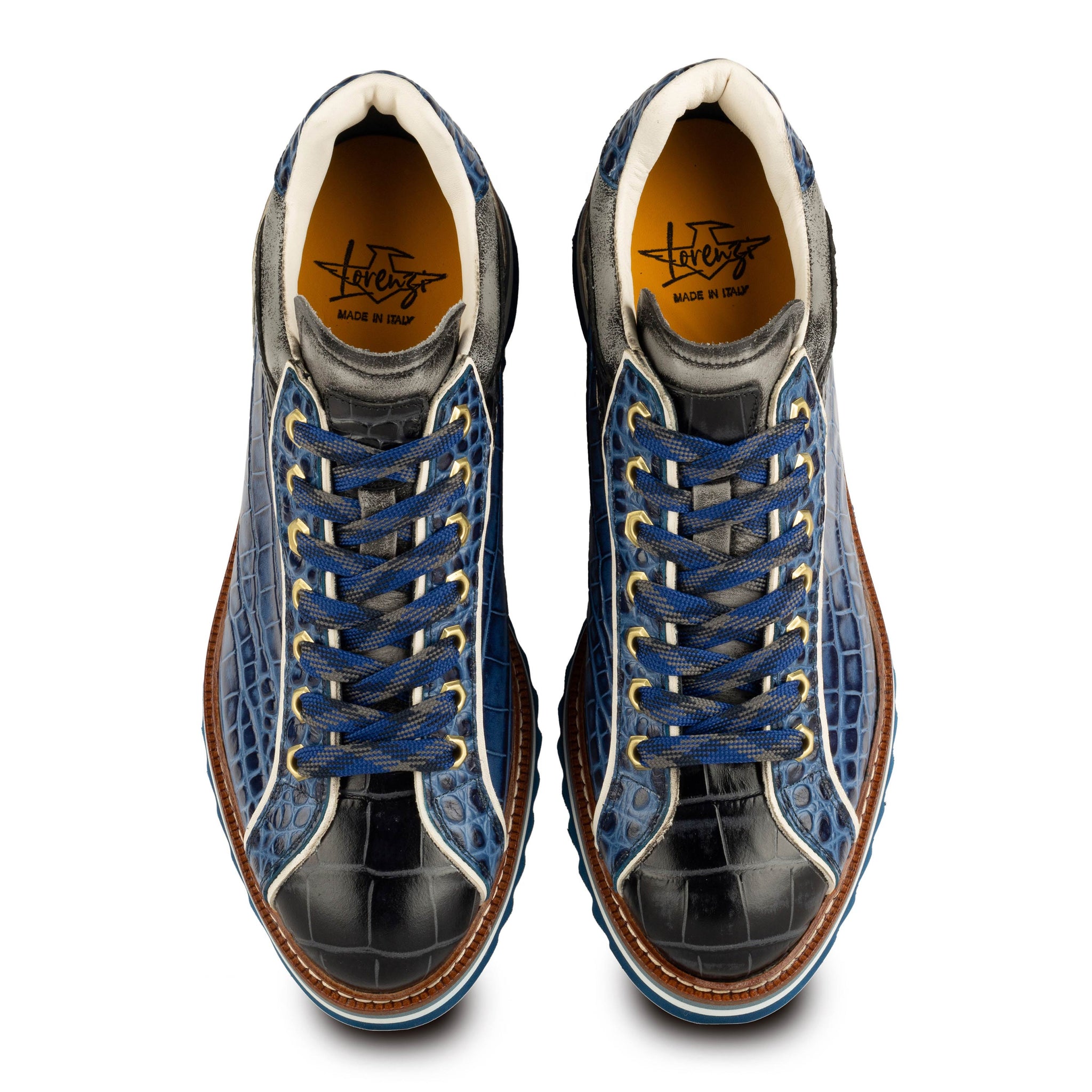 Modello scarpa : SNEAKER IN PELLE MULTICOLOR COBALTO E NERO