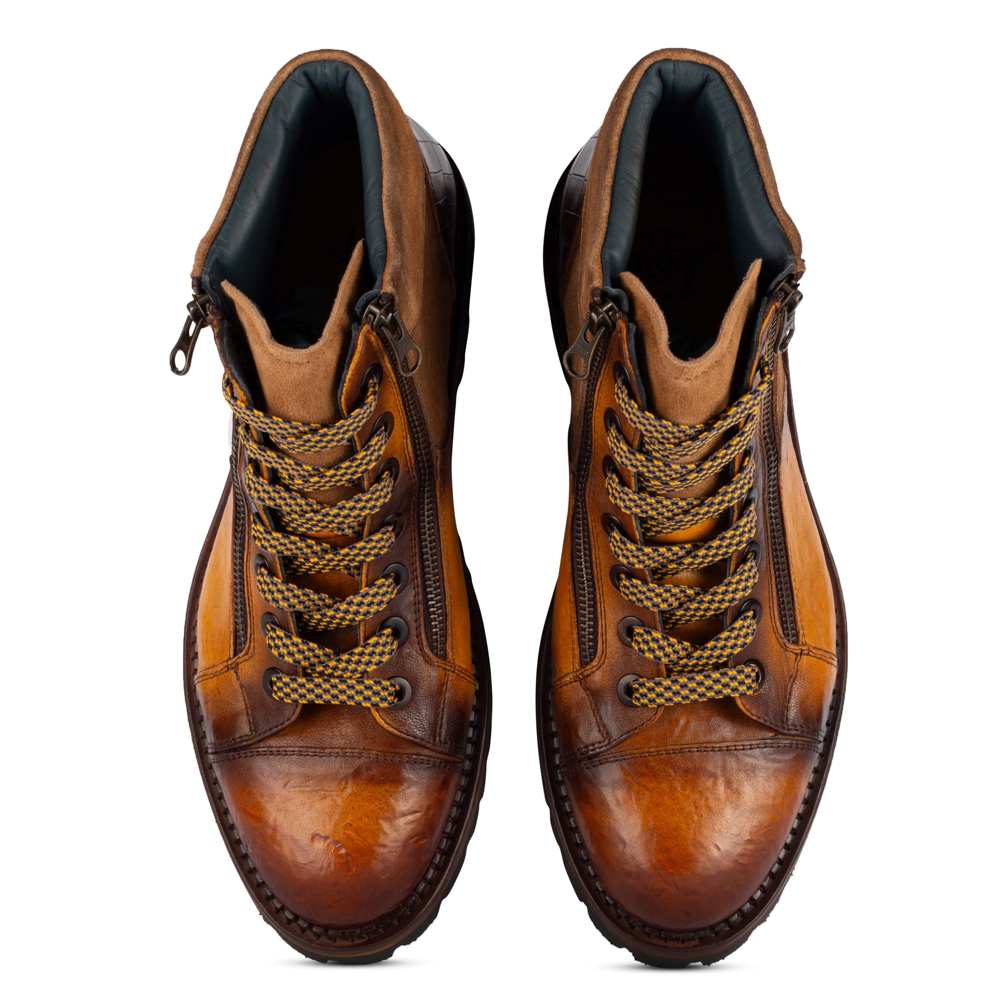 Materiale esterno : TOMAIA IN BUFALO GIALLO CON RIPORTI IN CAMOSCIO E VIT.STAMPATO COCCO