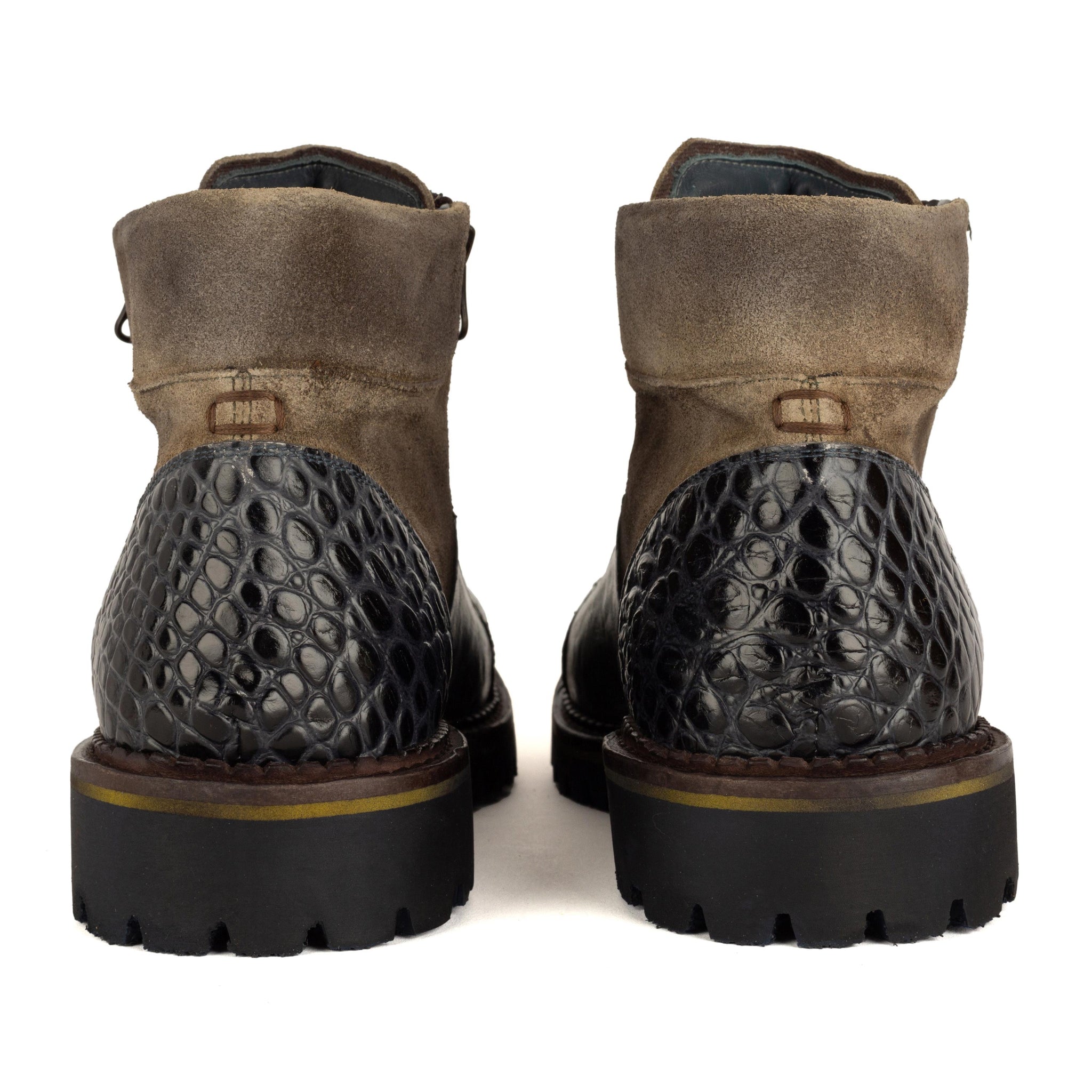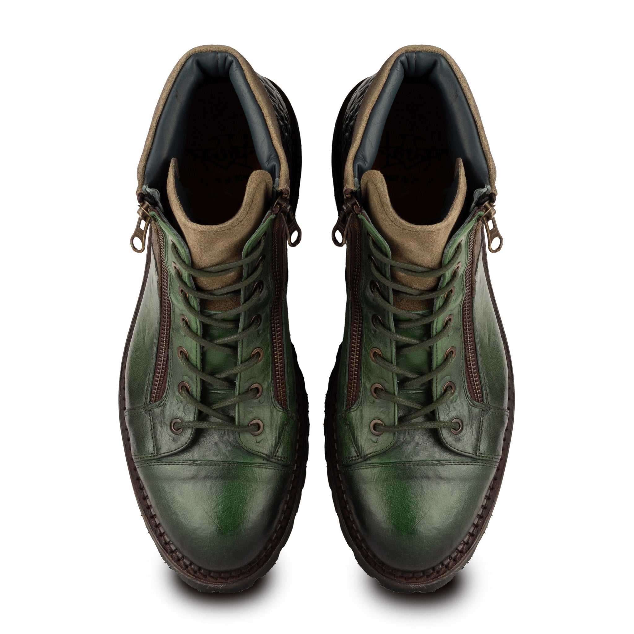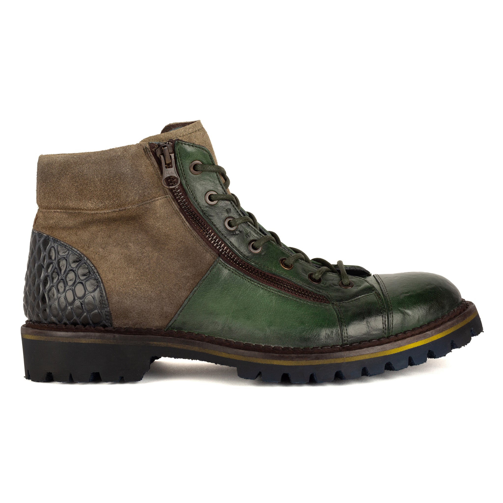 Materiale esterno : TOMAIA IN VITELLINO VERDE CON RIPORTI IN CAMOSCIO E VIT.STAMPATO COCCO