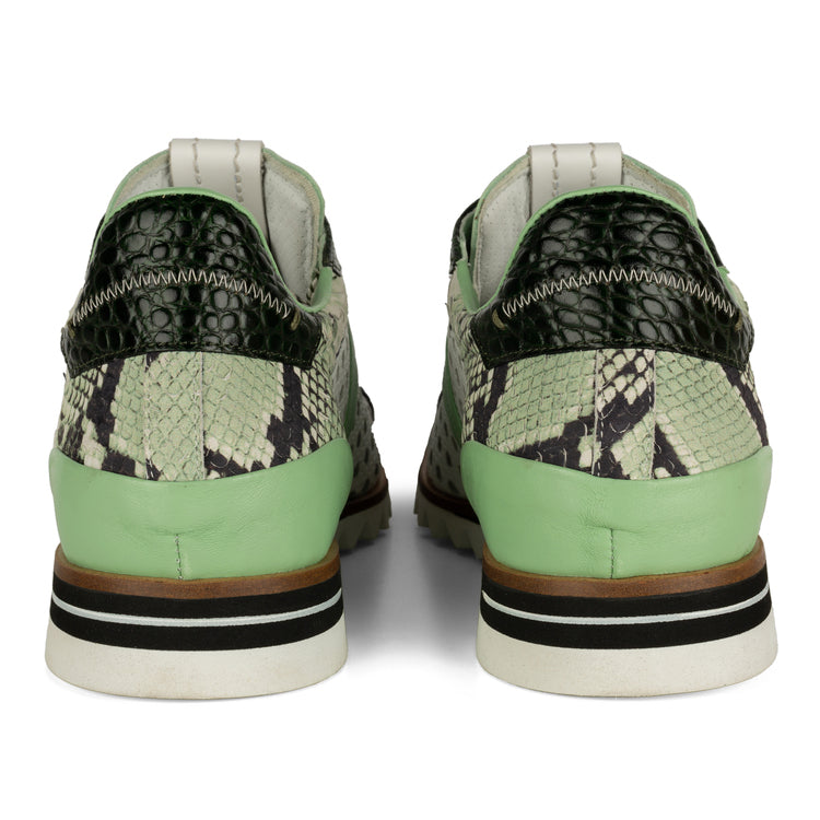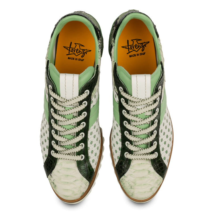 Colore scarpa: VITELLO STAMPATO PITONE MENTA, VITELLO STAMPATO COCCO VERDE, BIANCO, PUNZONATURA BIANCO LATERALE CON TRASPARENTE MENTA