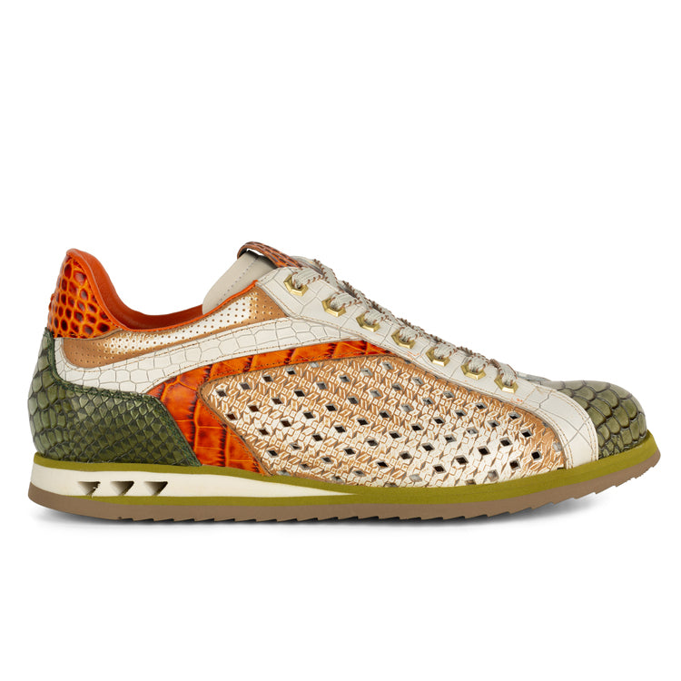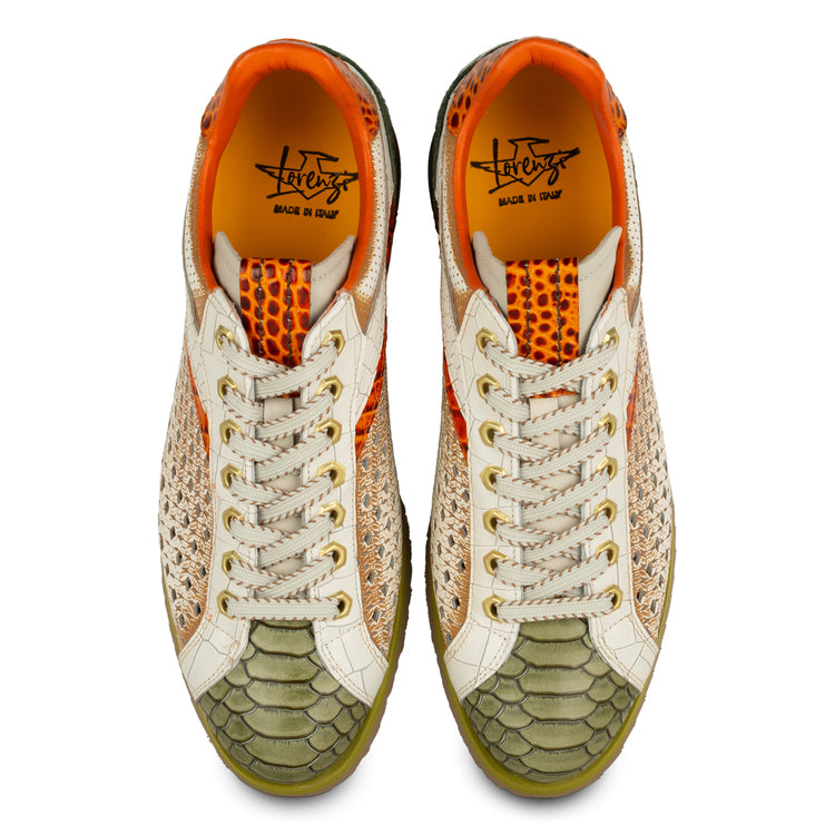 Modello scarpa: SNEAKER IN PELLE MULTICOLOR VERDE CUOIO CON BUCATURA LATERALE