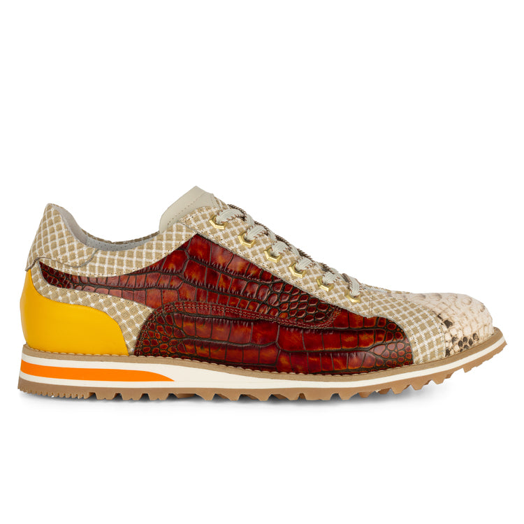 Modello scarpa: SNEAKER IN PELLE MULTICOLOR LATTE BEIGE E CUOIO