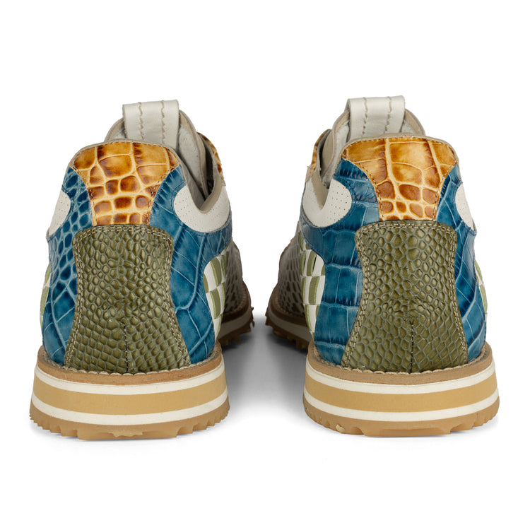 Colore scarpa: VITELLO STAMPATO PITONE VERDE, VITELLO STAMPATO COCCO GIALLO E COABALTO, INTRECCIO 3D LATERALE